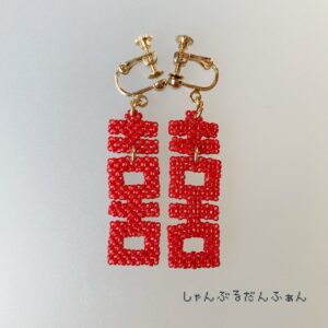 ラーメンの器に書いてある漢字モチーフをアクセサリーにしました。「喜」が2つ並んでいることから「双喜紋」と呼ばれるんだそうです。