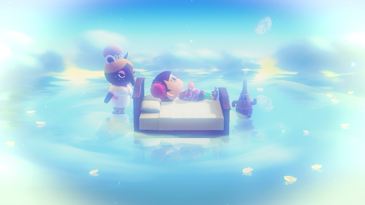 夢の島は、自分の家のベッドで「深く眠る」コマンドを選ぶと、自分の島とは別のまっさらな島を与えられ、自由に新しい島作りのできる夢の島に行くことができます。そもそもこのゲームが現実の暮らしを離れた仮想世界なのに、仮想世界の中のさらなる仮想世界に行くのはなんだかSF小説のようで、このまま現実に戻ってこれなくなりそうです。笑