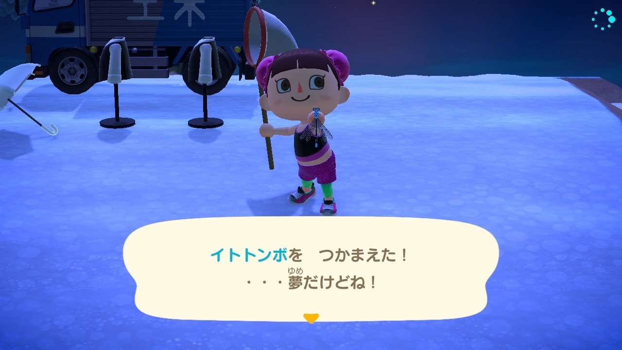 また、ゆめのしまで虫や魚を捕まえると「…夢だけどね!」というコメントが出ます。アイテム欄には追加されません。