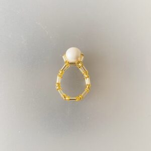 竹ビーズを立て爪風にして、主役のパール部分が強調されているデザインがお気に入りのリングです。この本で紹介されているアクセサリーで一番好みかもしれません。