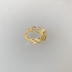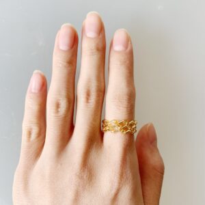 レースモチーフの透かしリング。色の組み合わせ次第でポップにもシックにもなるデザインだと思います。