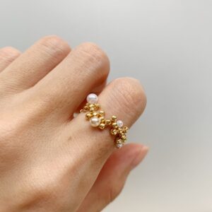 存在感のある、パールビーズのフラワーリングです。