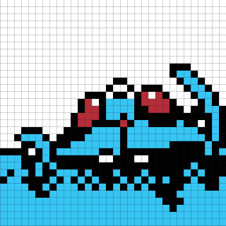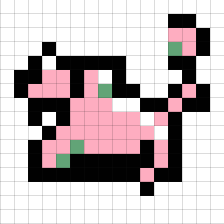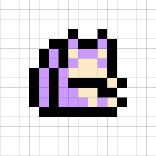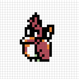 16×16デザイン。しっぽの長さ的にコラッタかなあと思うのですが、緑の柄が気になります。近くにニドキングがいることもあり、もしかしたらニドラン♂なのかなと思っています。