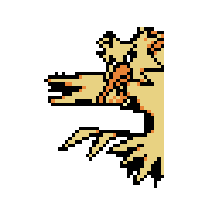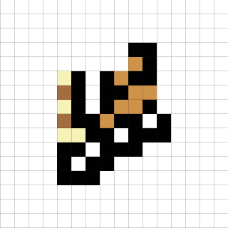 今回のドット絵で、一番何かわからないドット絵です。色的にガーディ、イーブイあたりしか浮かばなかったのですが、木の上にいそうな画像なので、ガーディって木登るかなあ…って感じです。