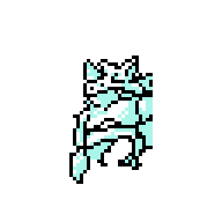 32×32サイズ。目の感じはサンドっぽいですが、ほかのポケモンとのサイズ比を考えるとかなり大きいので、ガルーラなのかなと思います。体のまんなかにポケットのようなものもありますからね。身体の一部が岩に隠れていて、全身は描かれていませんでした。